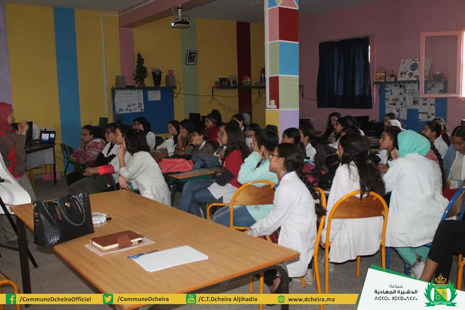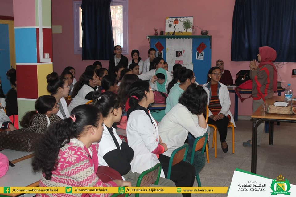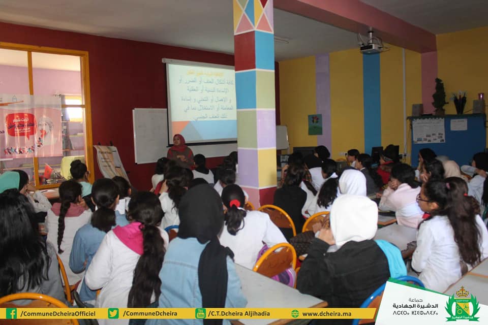 في اطار استكمال حملاتها التحسيسية الموجهة للناشئة، بخطورة ظاهرة التحرش الجنس، نظمت جمعية ملاذ لتنمية المرأة والأسرة، بتنسيق مع مجلس عمالة انزكان ايت ملول وادارة اعدادية الفردوس بالدشيرة الجهادية، زوال يوم الجمعة المنصرم، 14 فبراير الجاري، نشاطا توعويا بالمؤسسة لفائدة تلميذات اعدادية الفردوس ، تحت شعار ” مغنسكتوش؛ التحرش جريمة؛ كيعاقب عليها القانون”. وذلك بقاعة الاعلاميات.