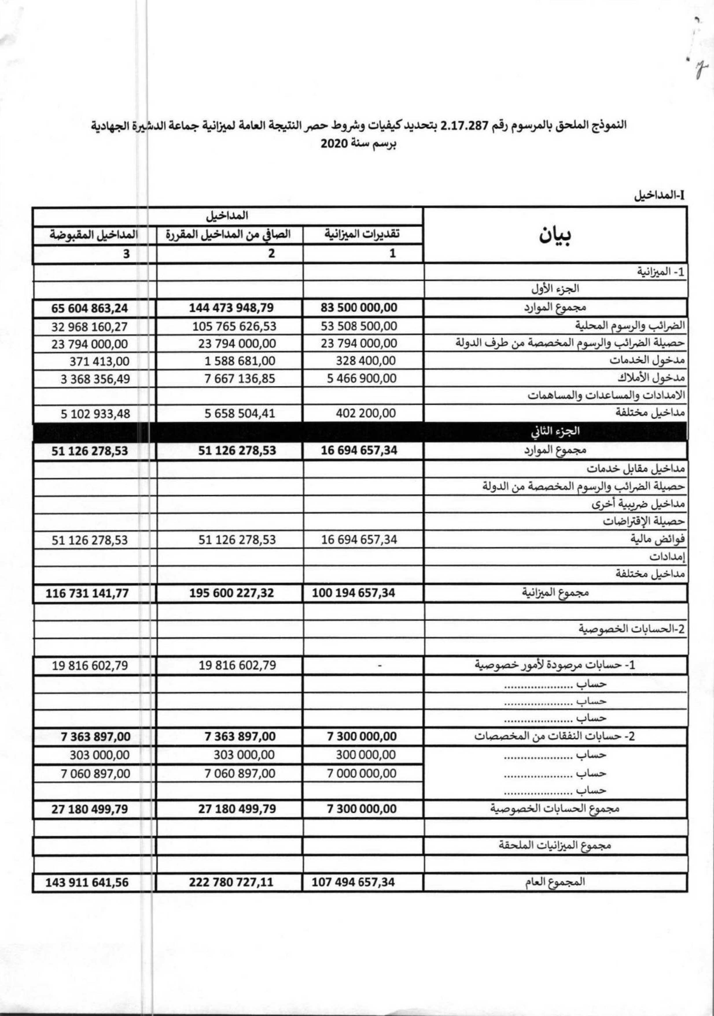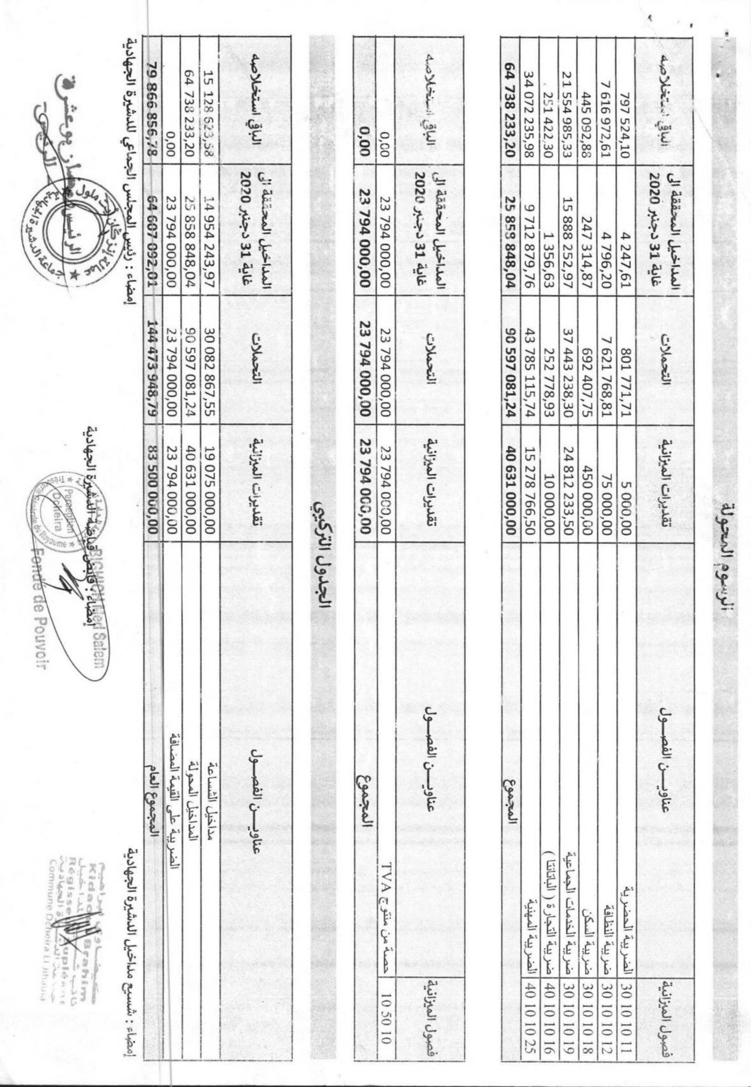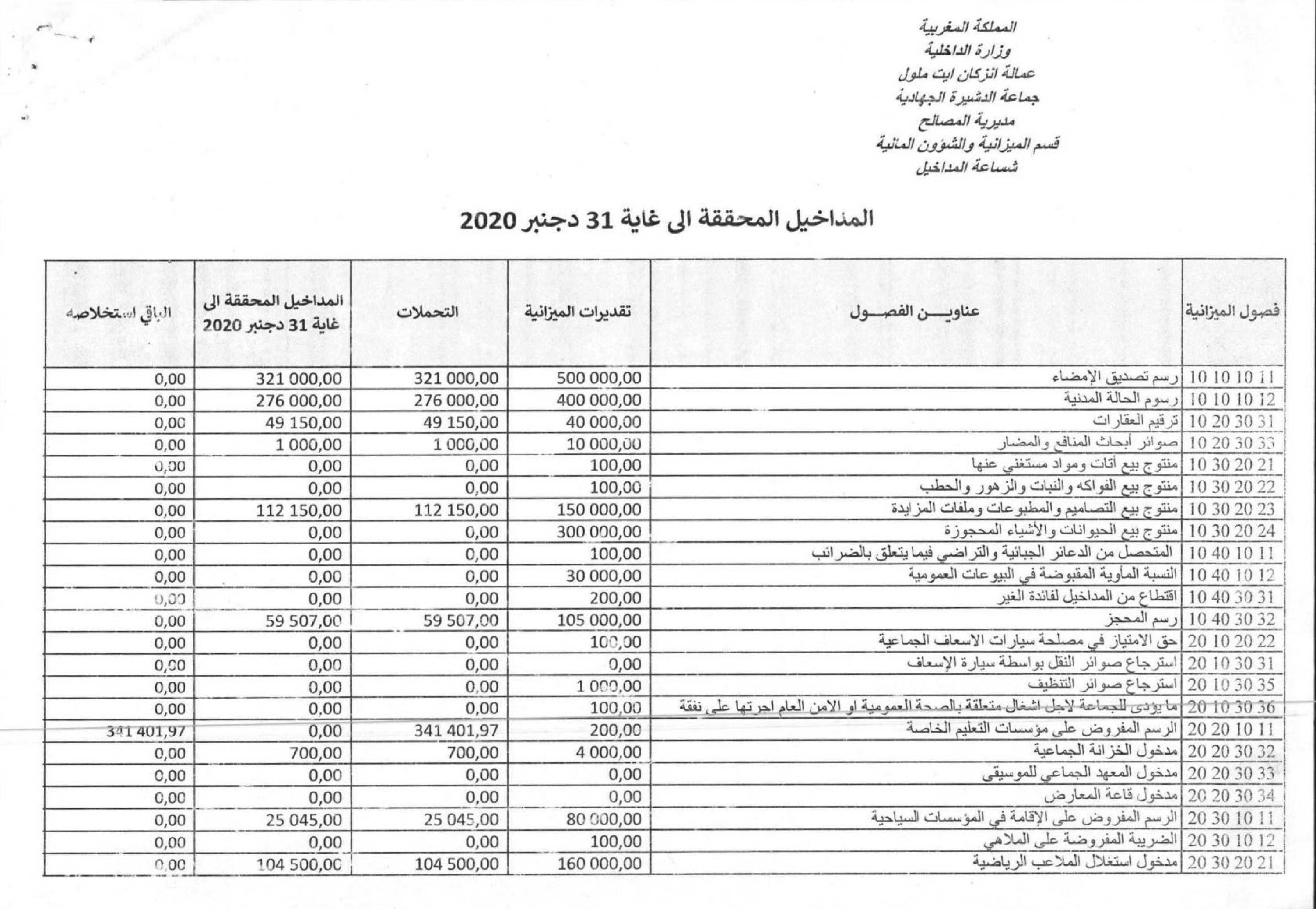 المداخيل المحققة الى غاية 31 دجنبر 2020