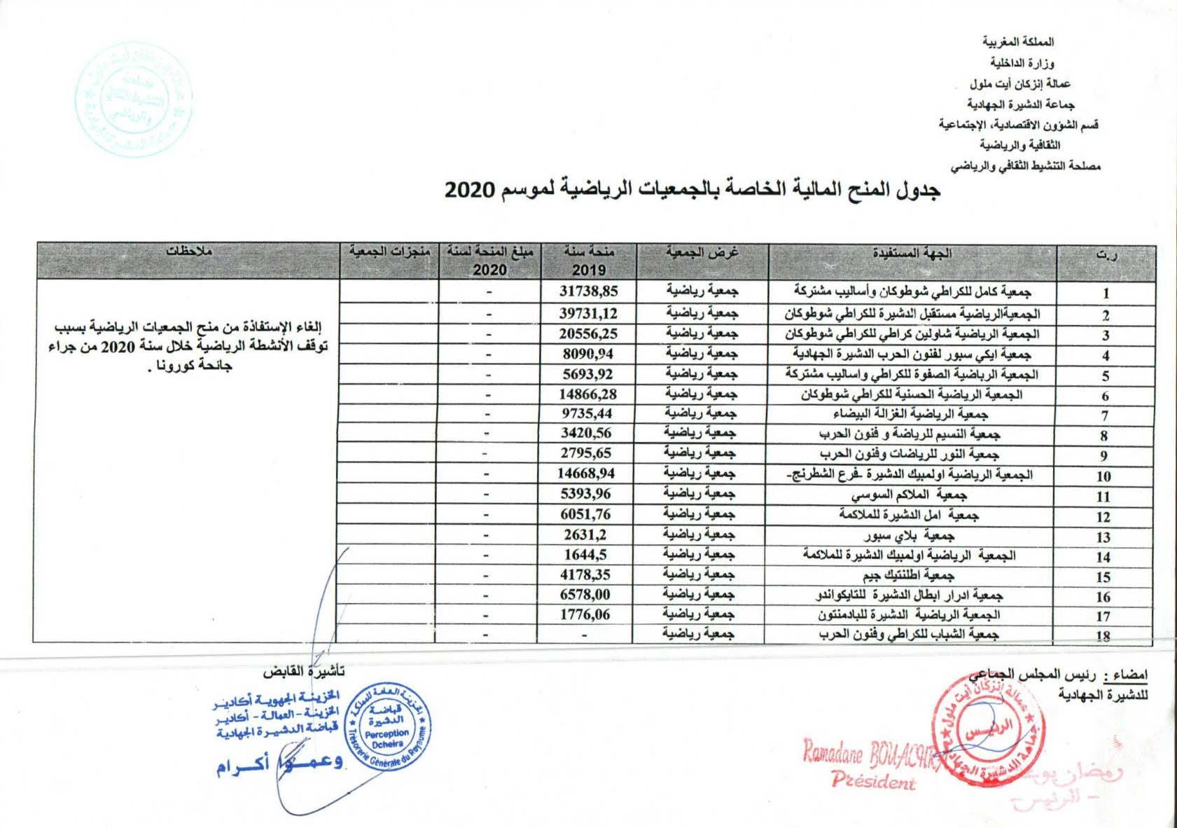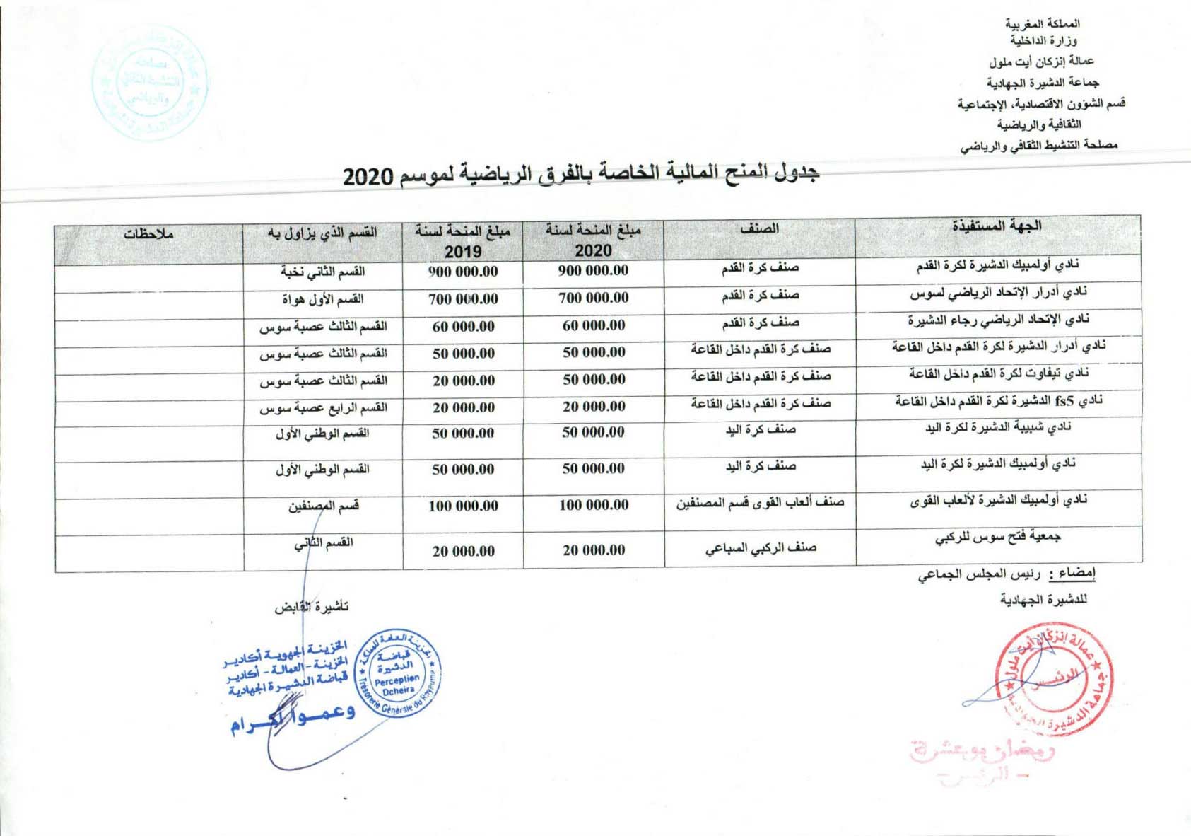 جدول المنح المالية الخاصة بالجمعيات الرياضية