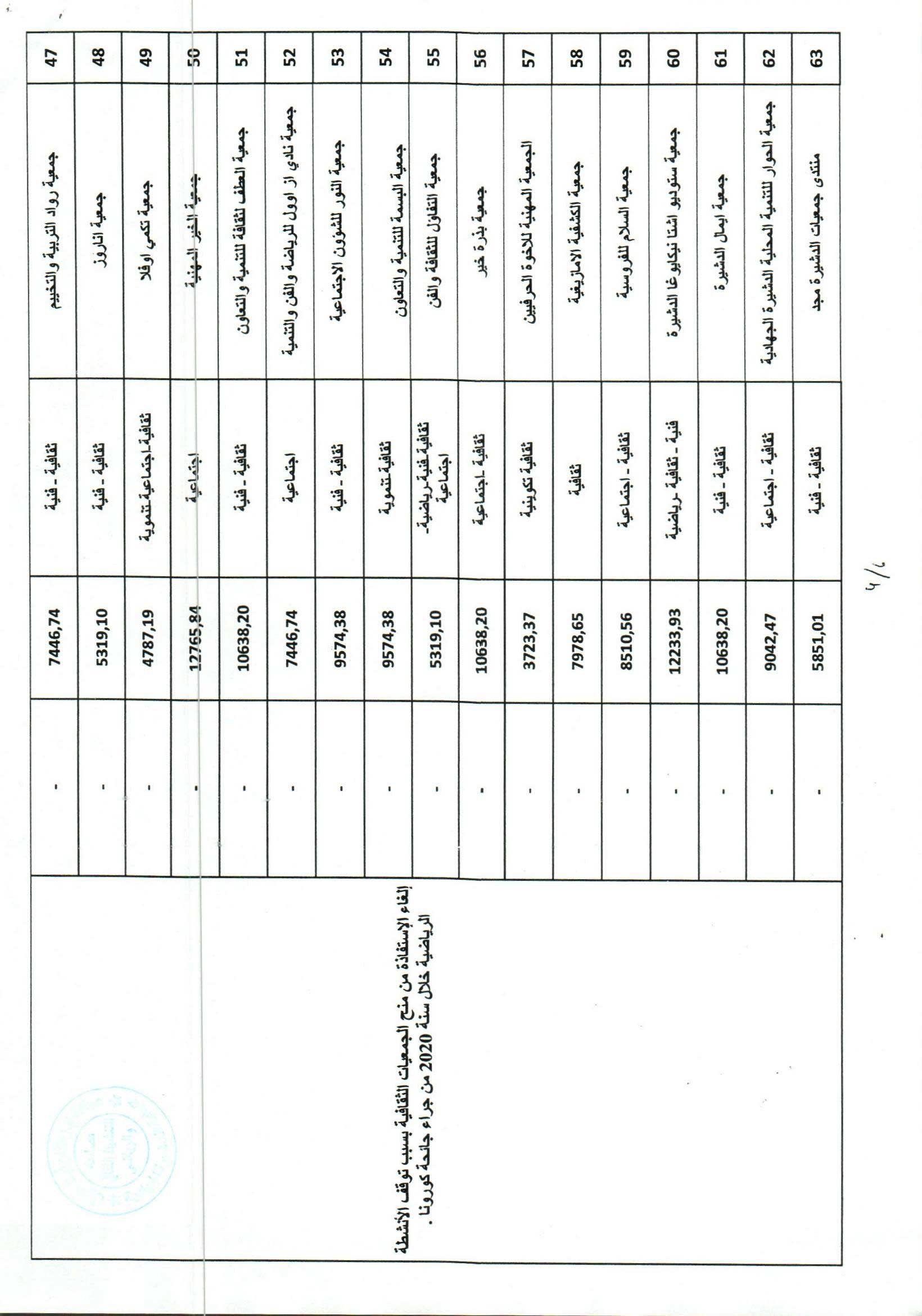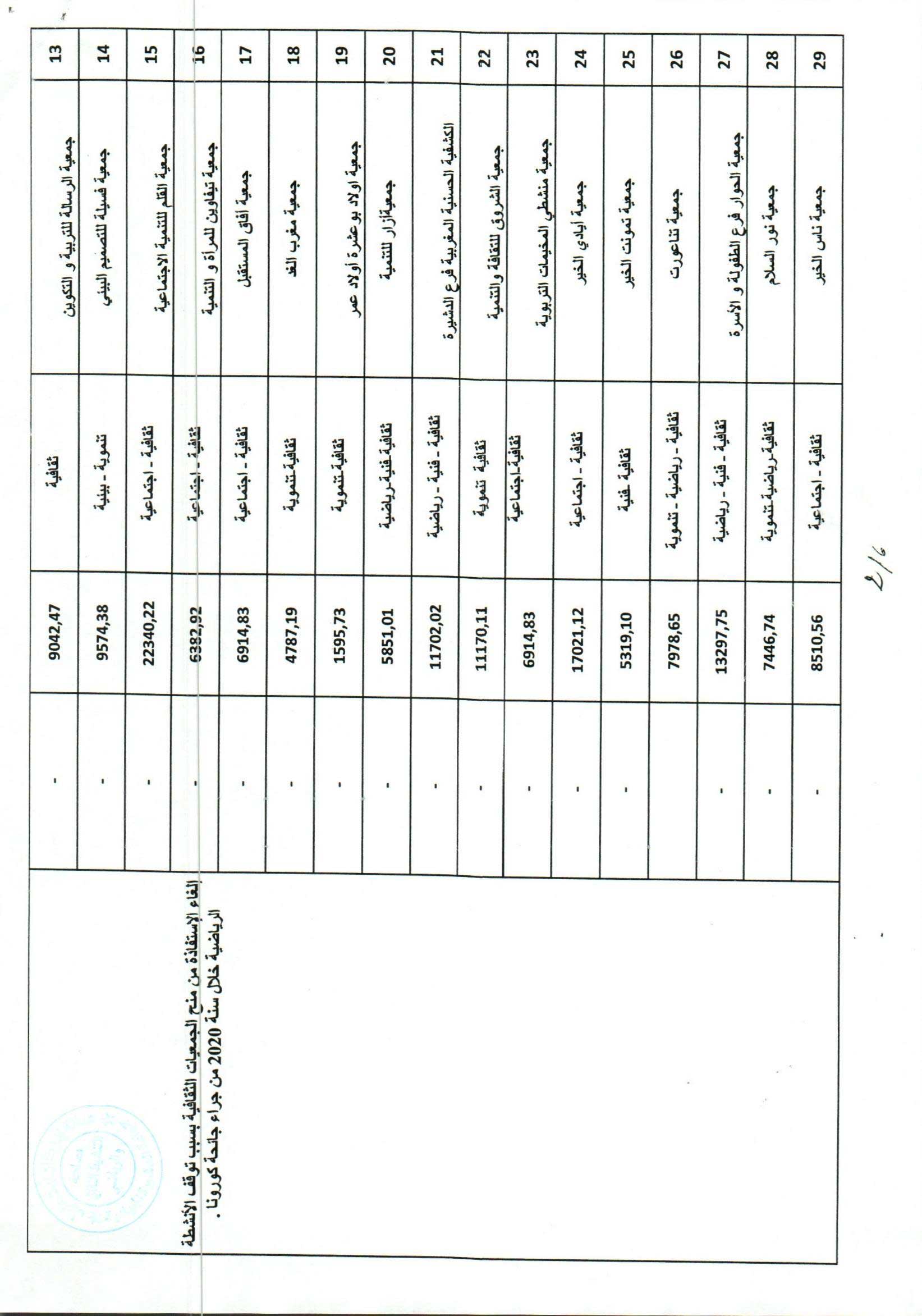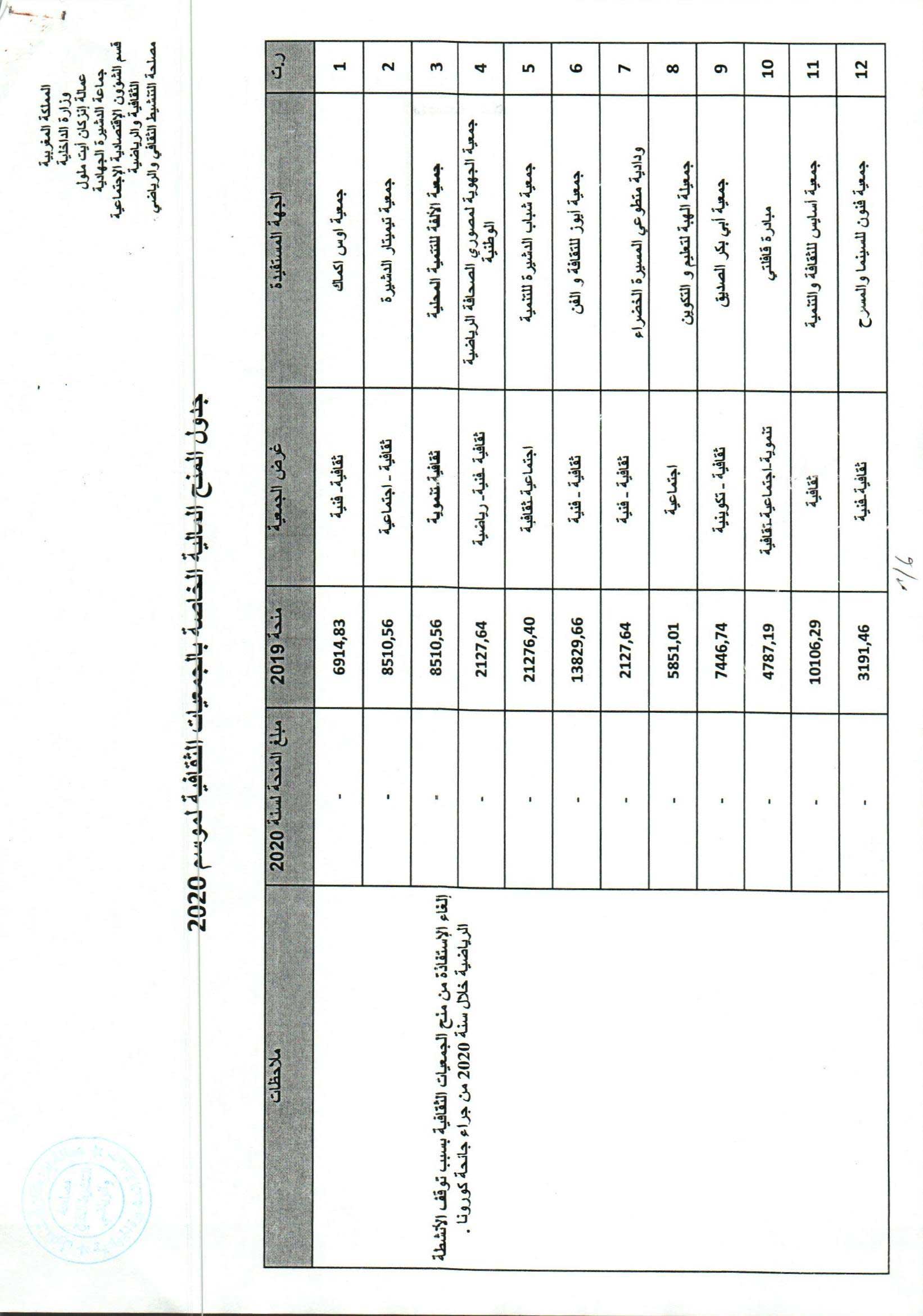 جدول المنح المالية الخاصة بالجمعيات الثقافية