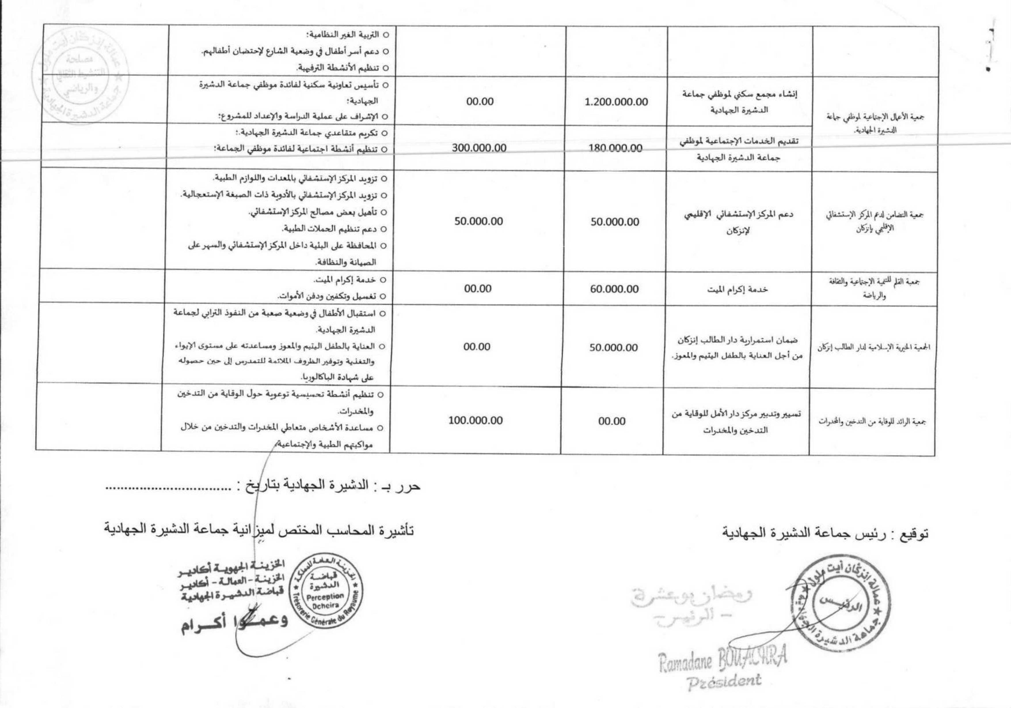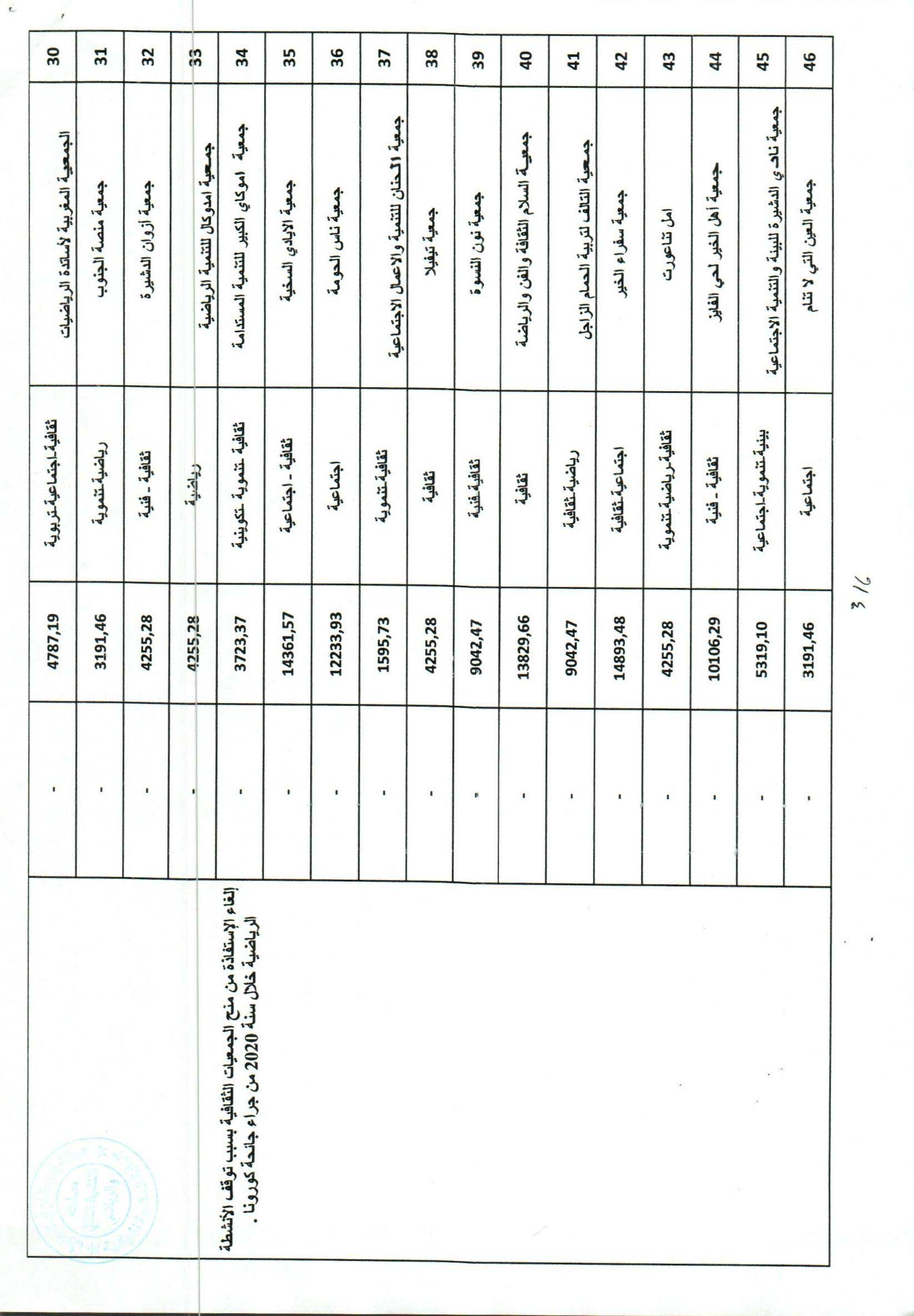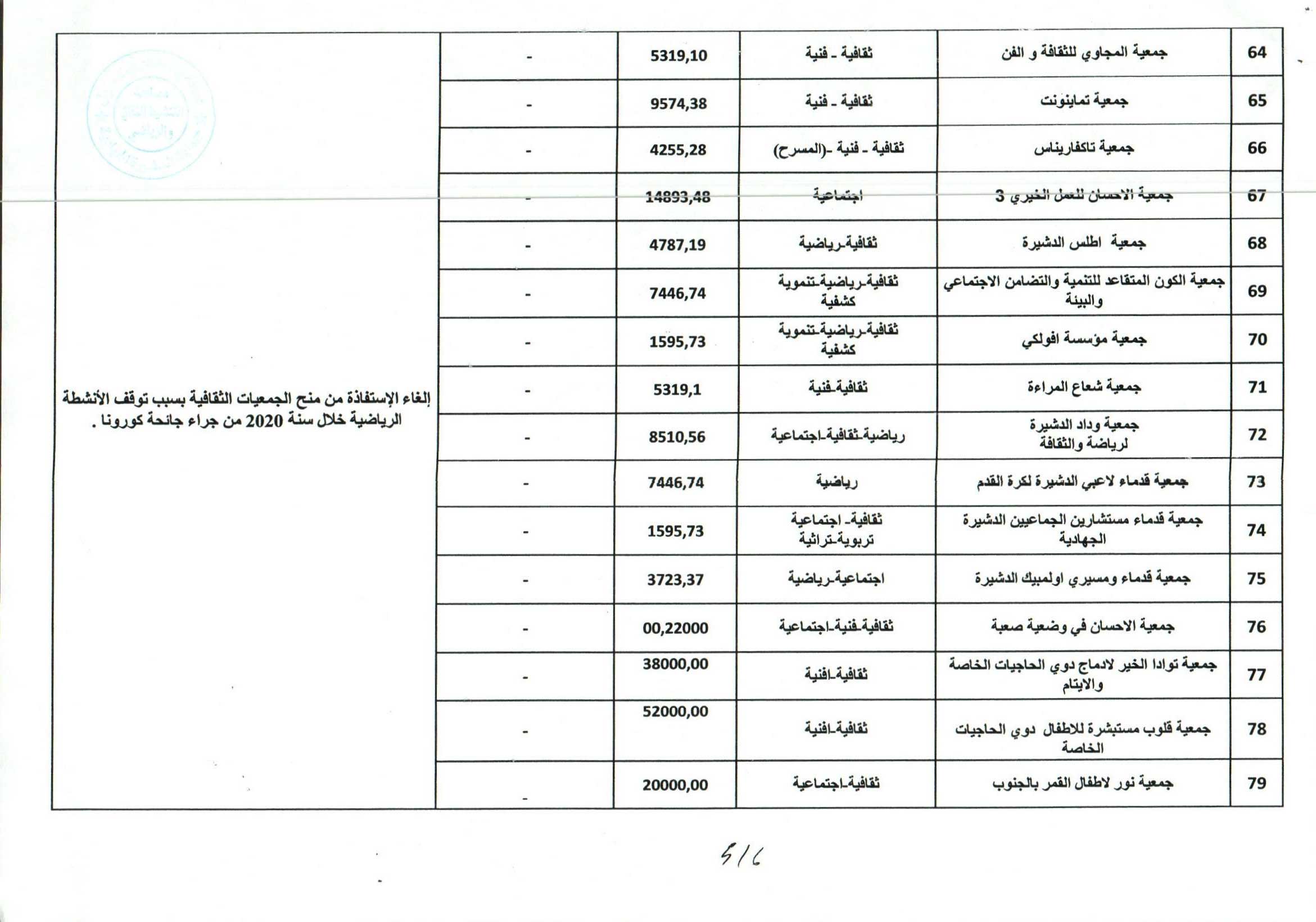 جدول المنح المالية الخاصة بالجمعيات الثقافية