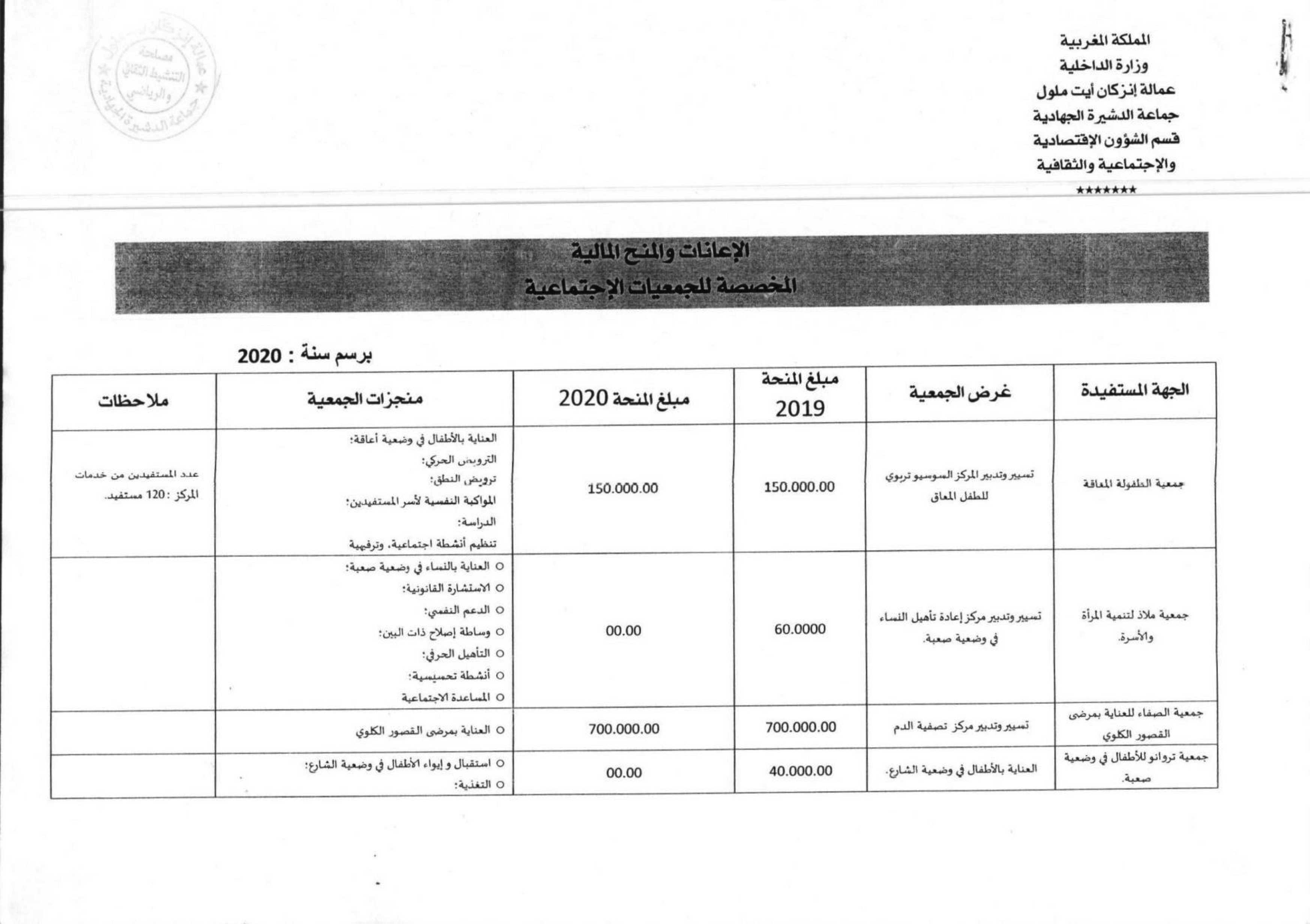 الإعانات والمنح المالية المخصصة للجمعيات الاجتماعية