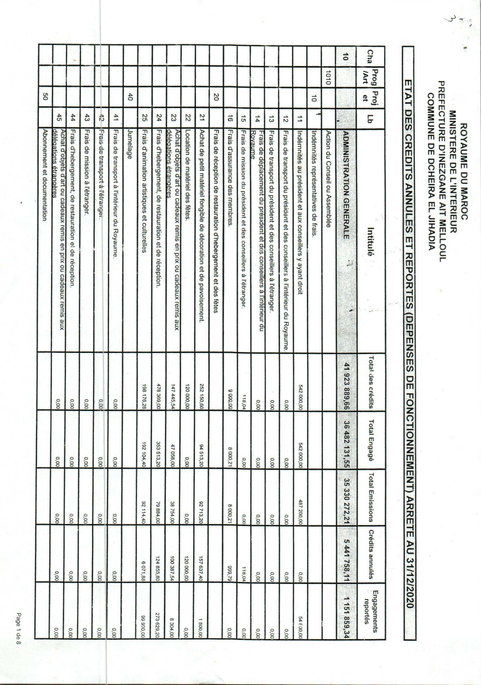 Etat des crédits annules et reportes (dépenses de fonctionnement ) arrêtés au 31/12/2020