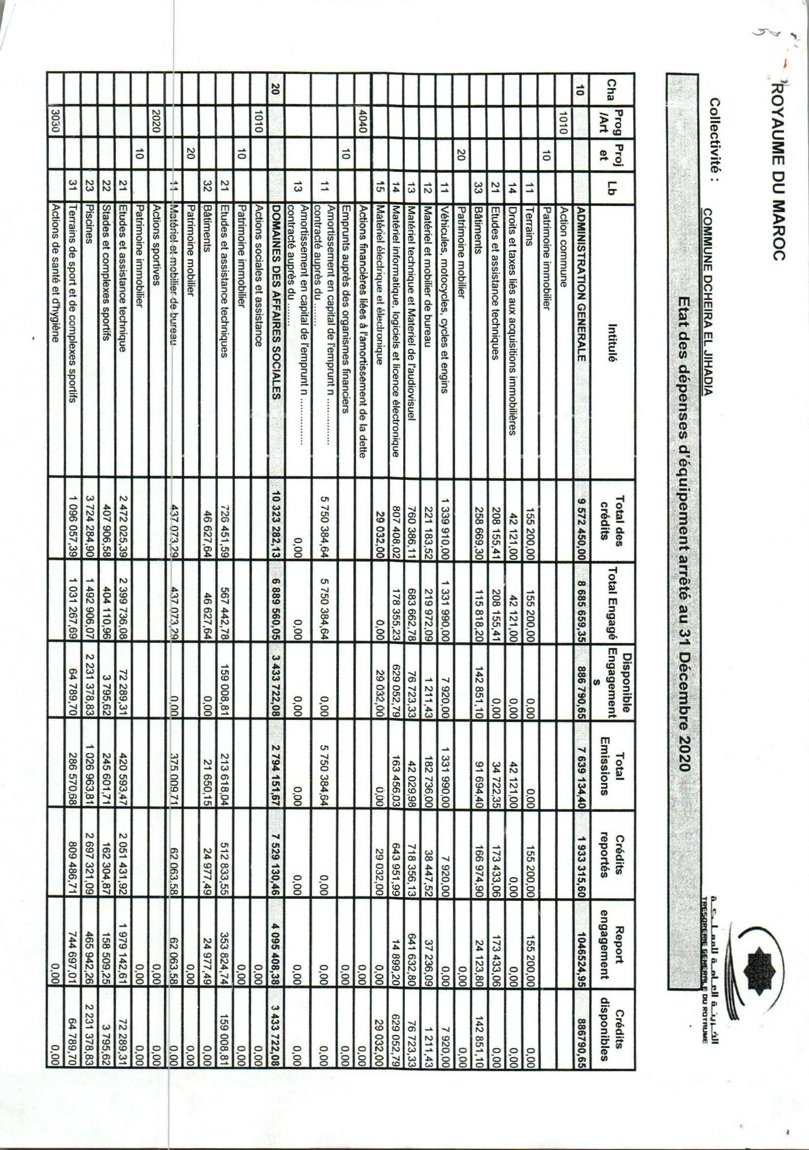 Etat des dépenses d’équipement arrété au 31 décembre 2020