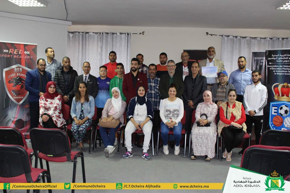 نظمت جمعية إتحاد أساتذة التربية البدنية بالتعليم الخصوصي والمنشطين الرياضيين بجهة سوس، زوال يوم السبت 22 فبراير الجاري، بقاعة الندوات بالقصر الجماعي حفل افتتاح الجمعية، بحضور السيد رمضان بوعشرة، رئيس المجلس الجماعي للدشيرة الجهادية، ونوابه وبعض أساتذة التربية البدنية.