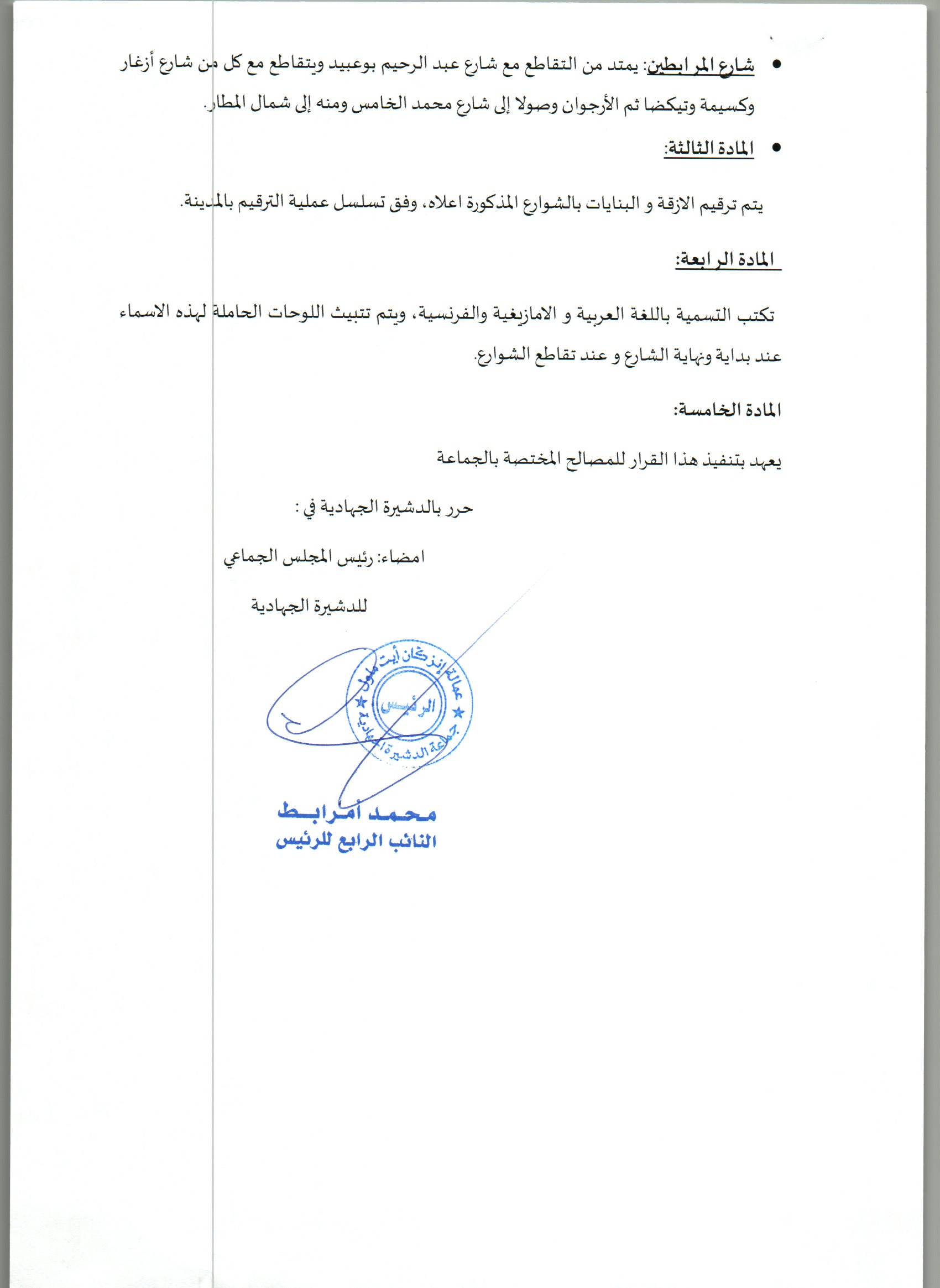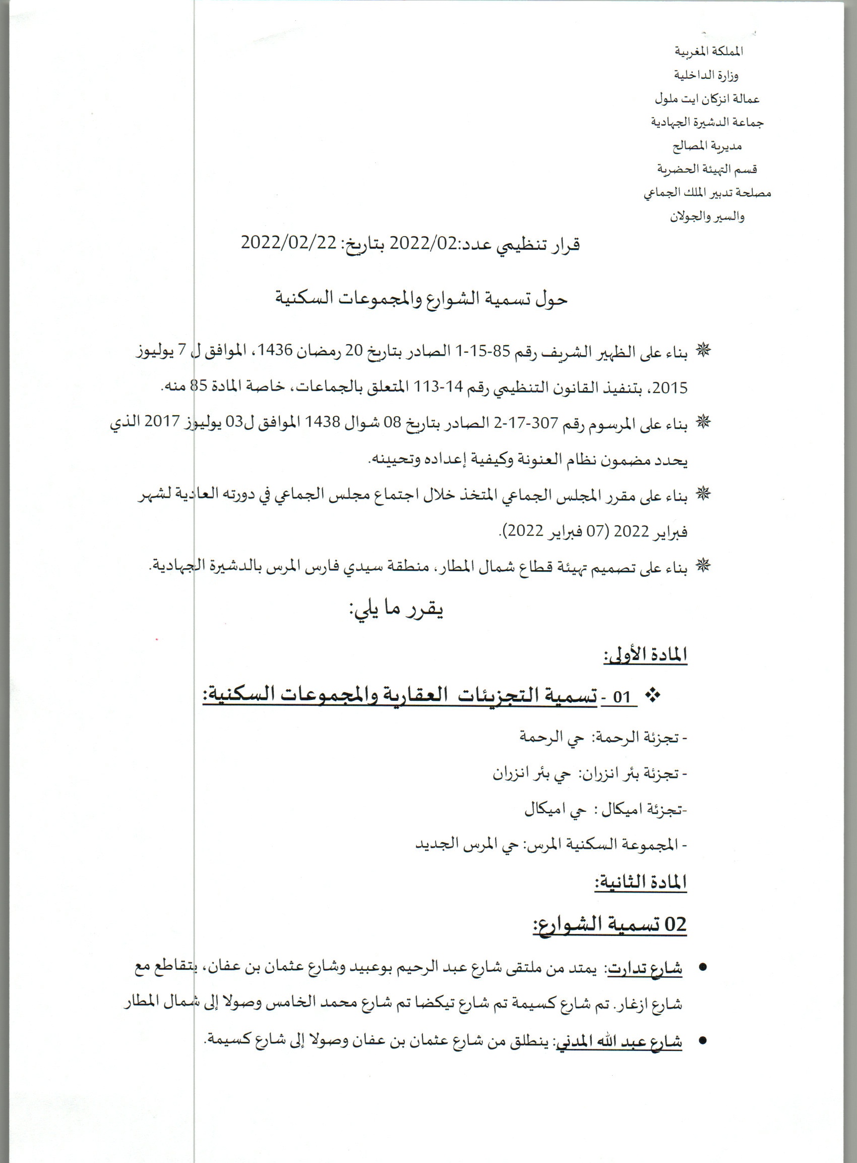 قرار رقم 10 المتعلق باعداد مشروع برنامج عمل جماعة الدشيرة الجهادية