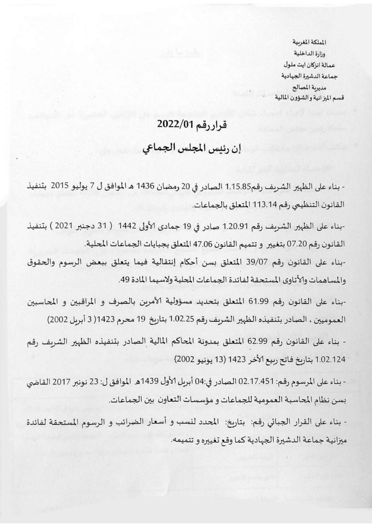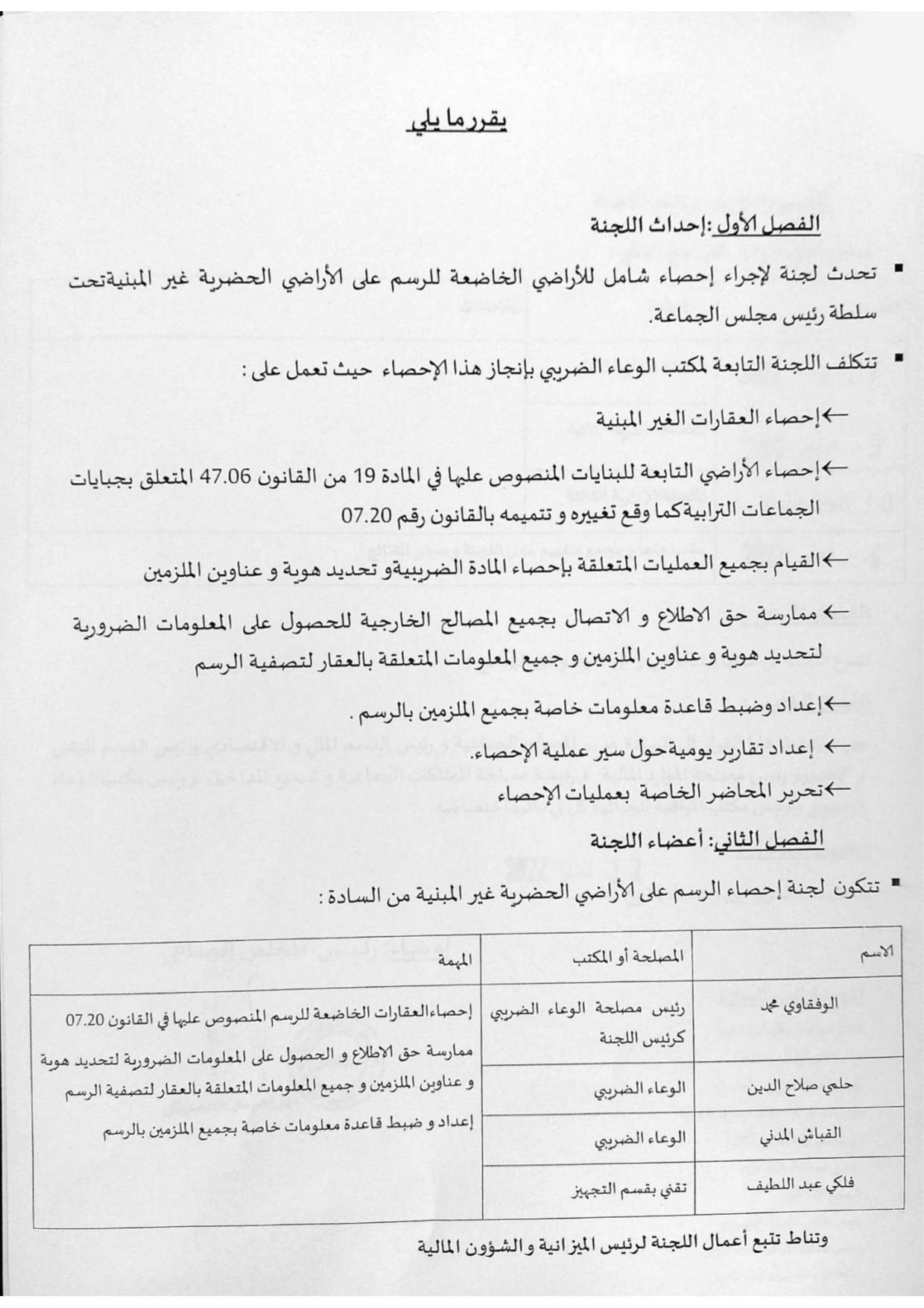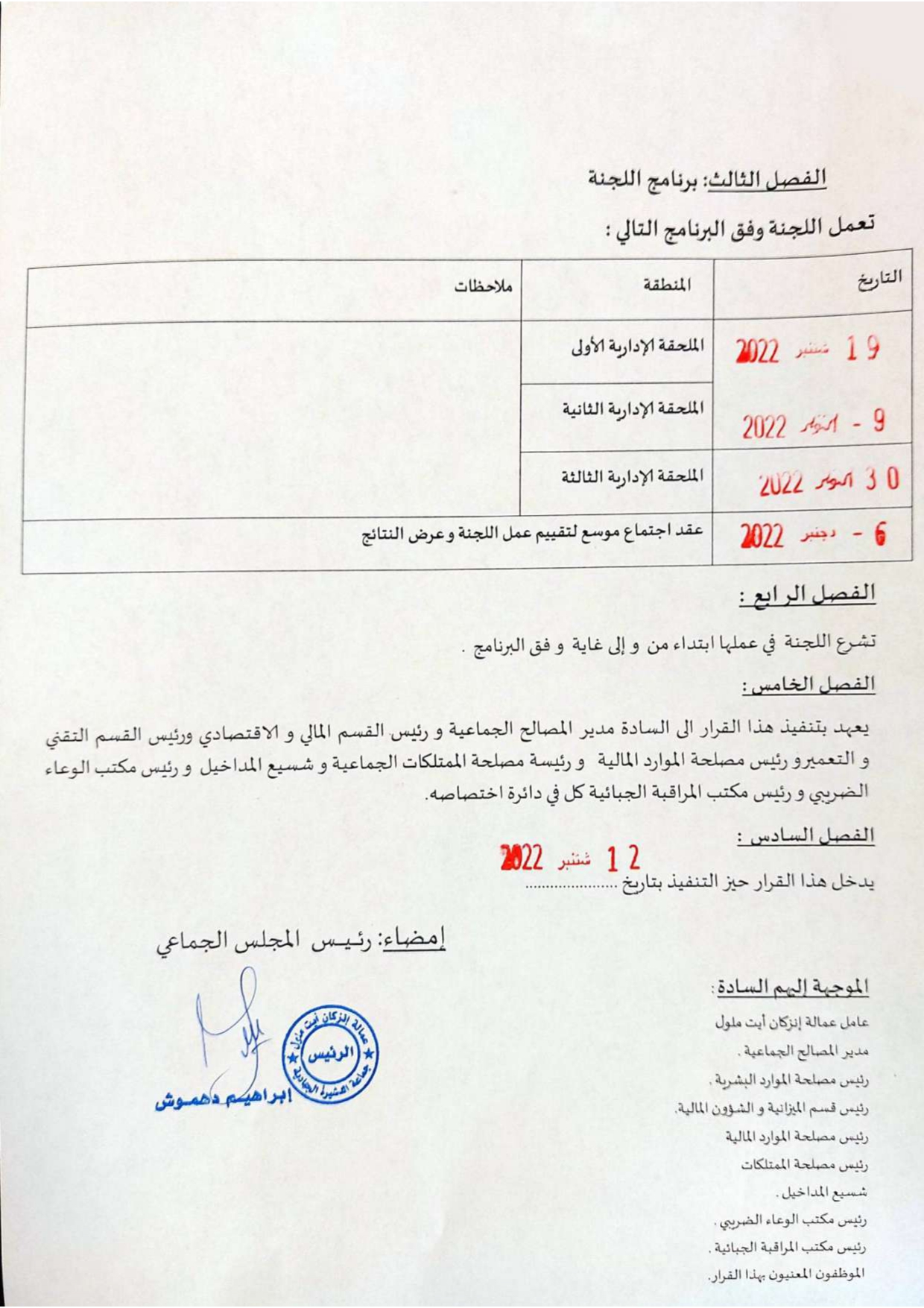قرار رقم 10 المتعلق باعداد مشروع برنامج عمل جماعة الدشيرة الجهادية