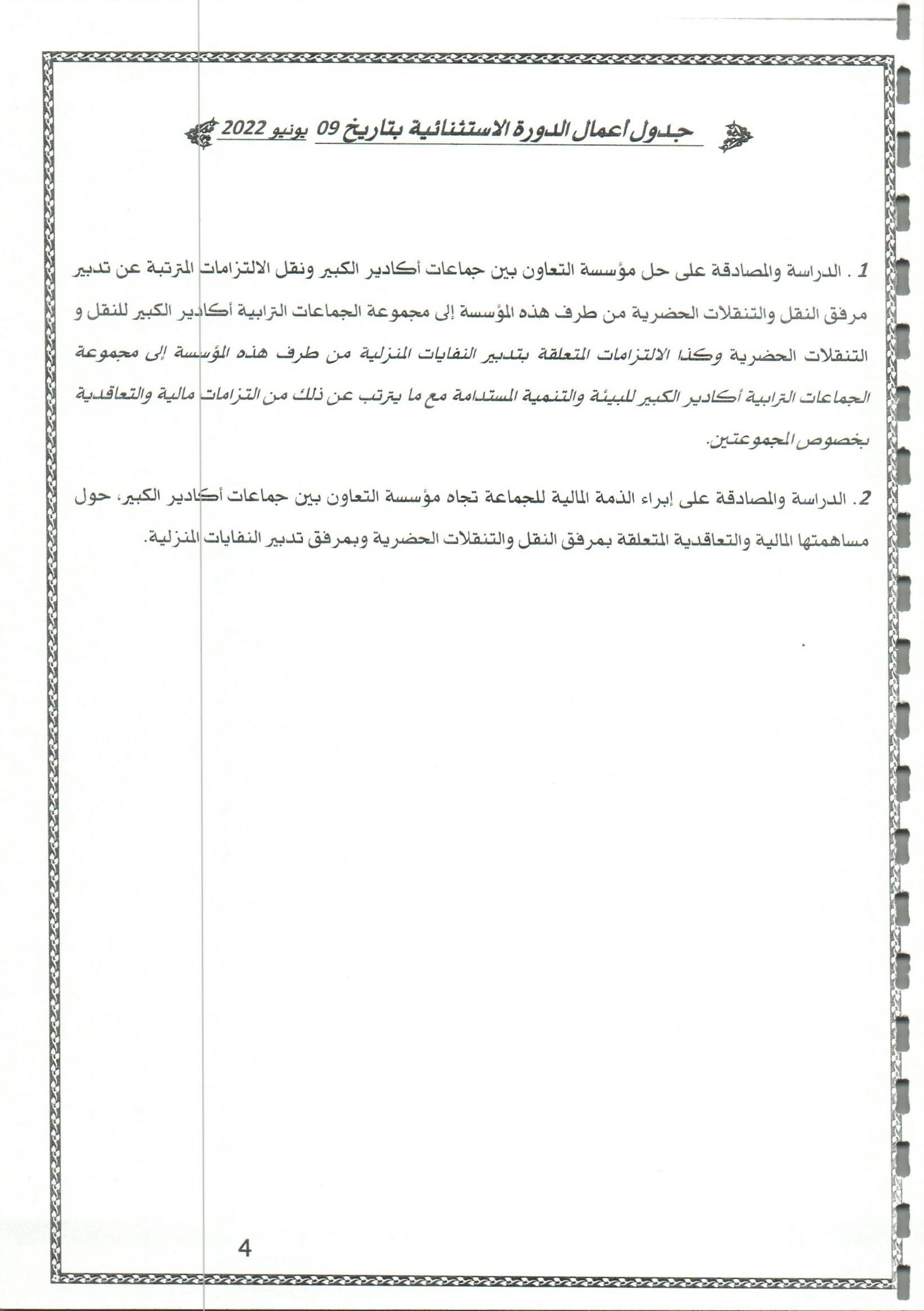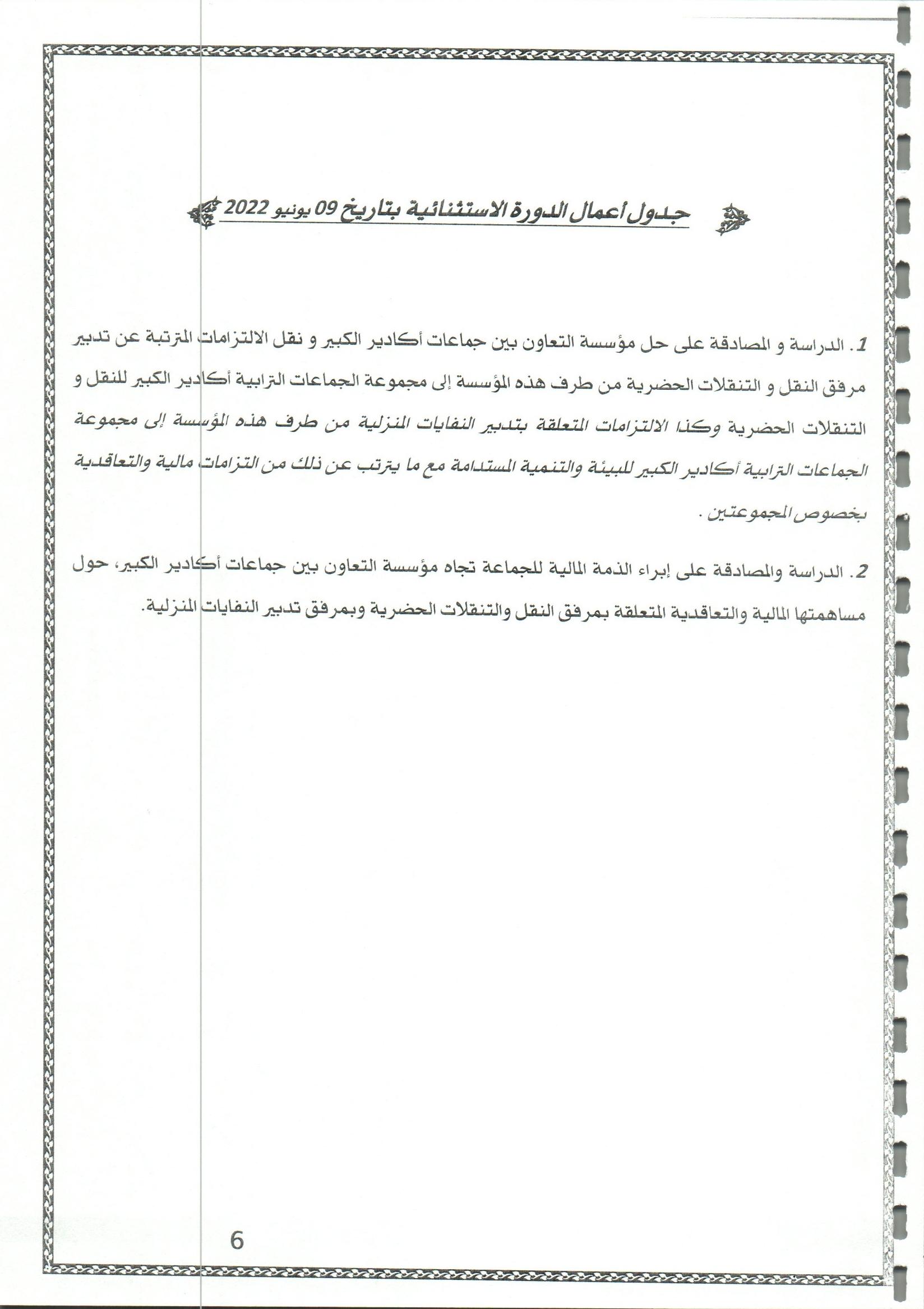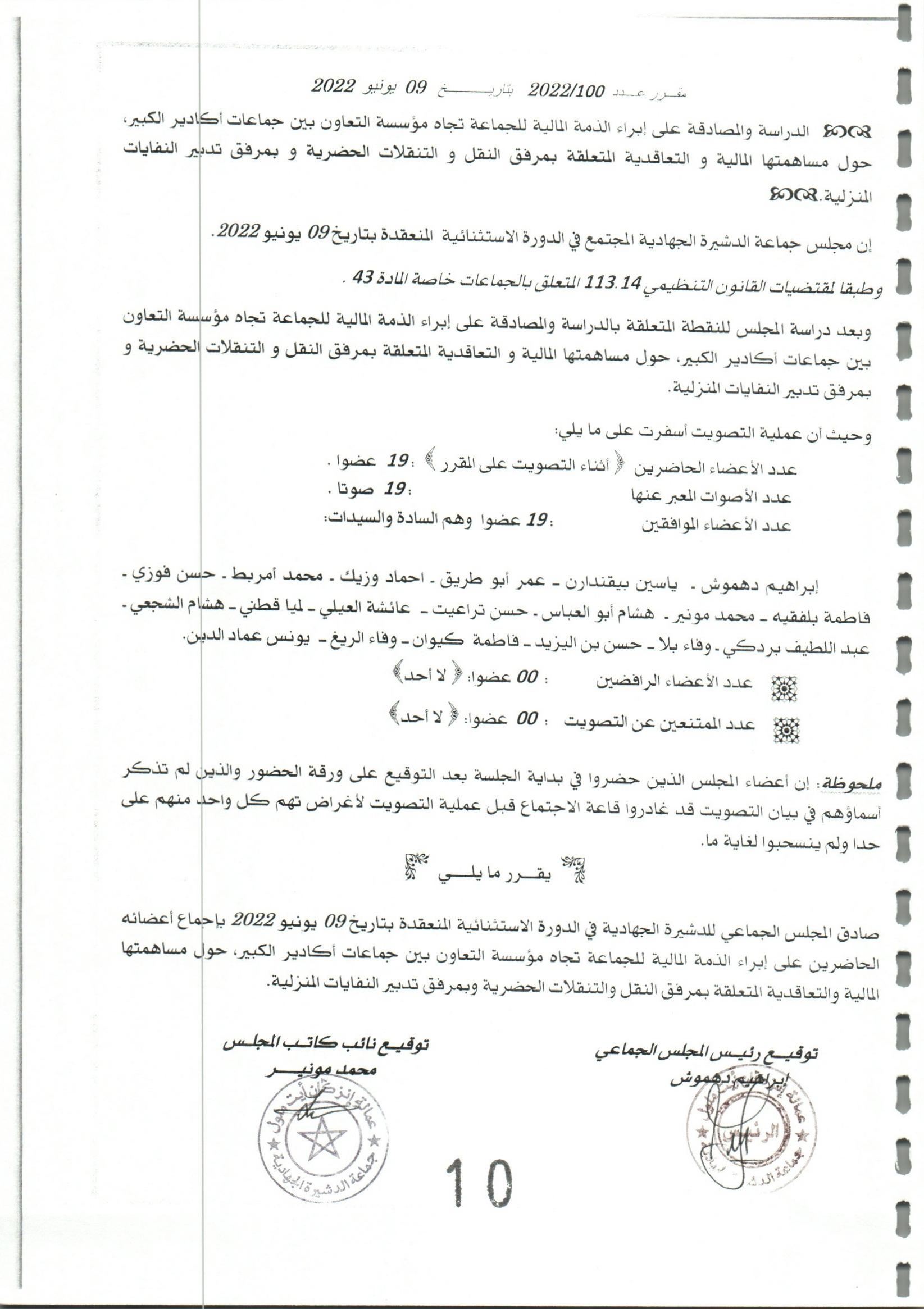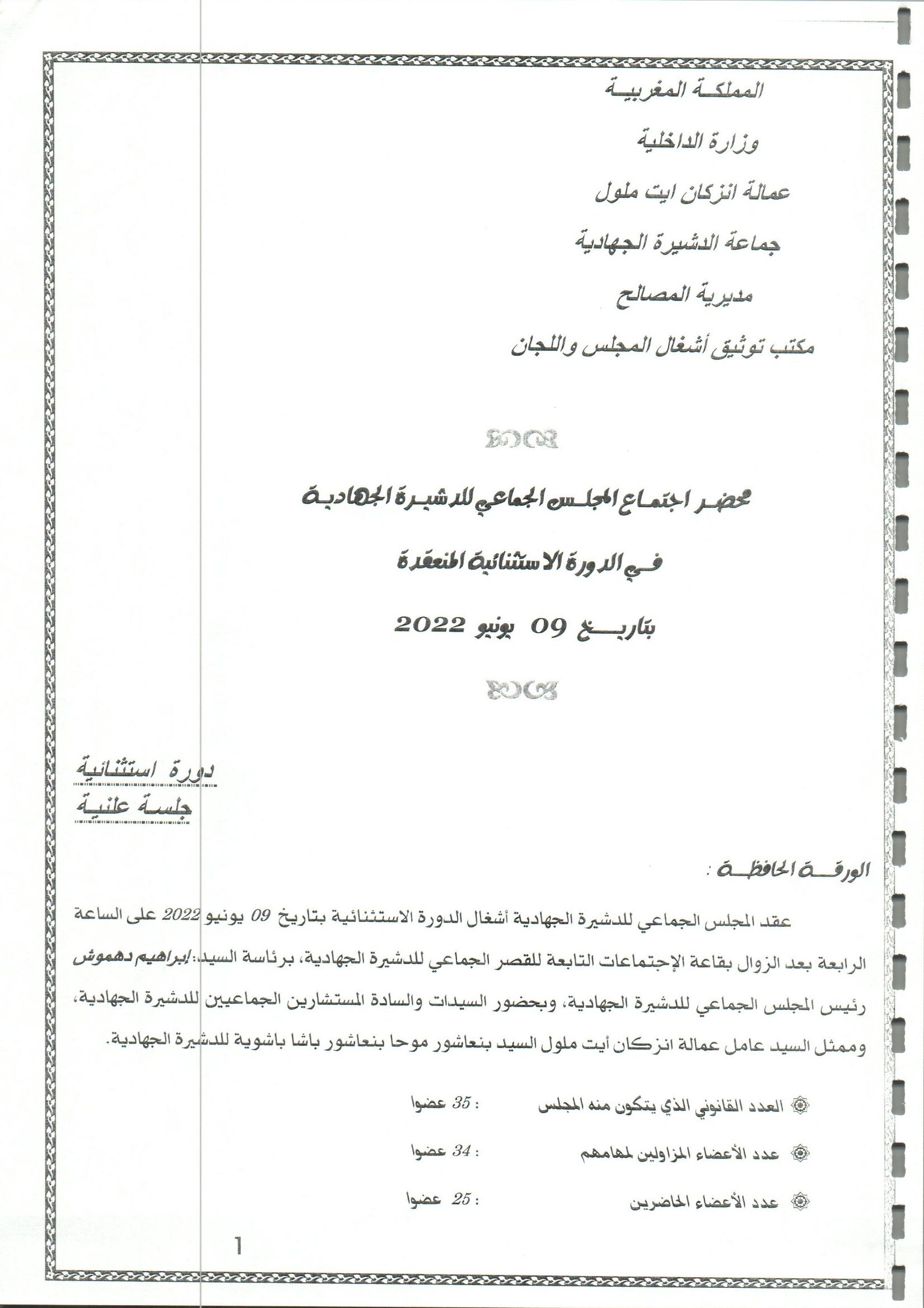 محضر إجتماع المجلس الجماعي للدشيرة الجهادية الدورة الاستثنائية بتاريخ 09 يونيو 2022 محاضر دورات المجلس شارك FacebookTwitterWhatsAppLinkedinTelegram