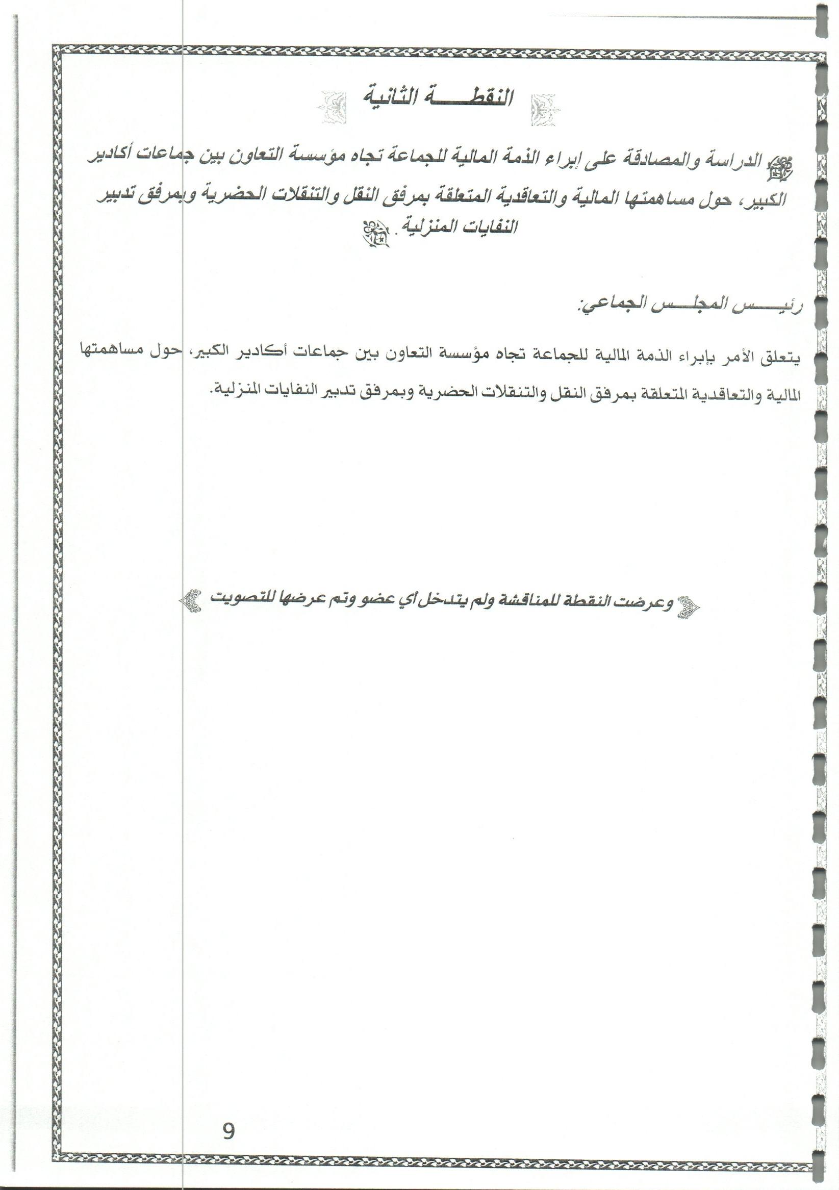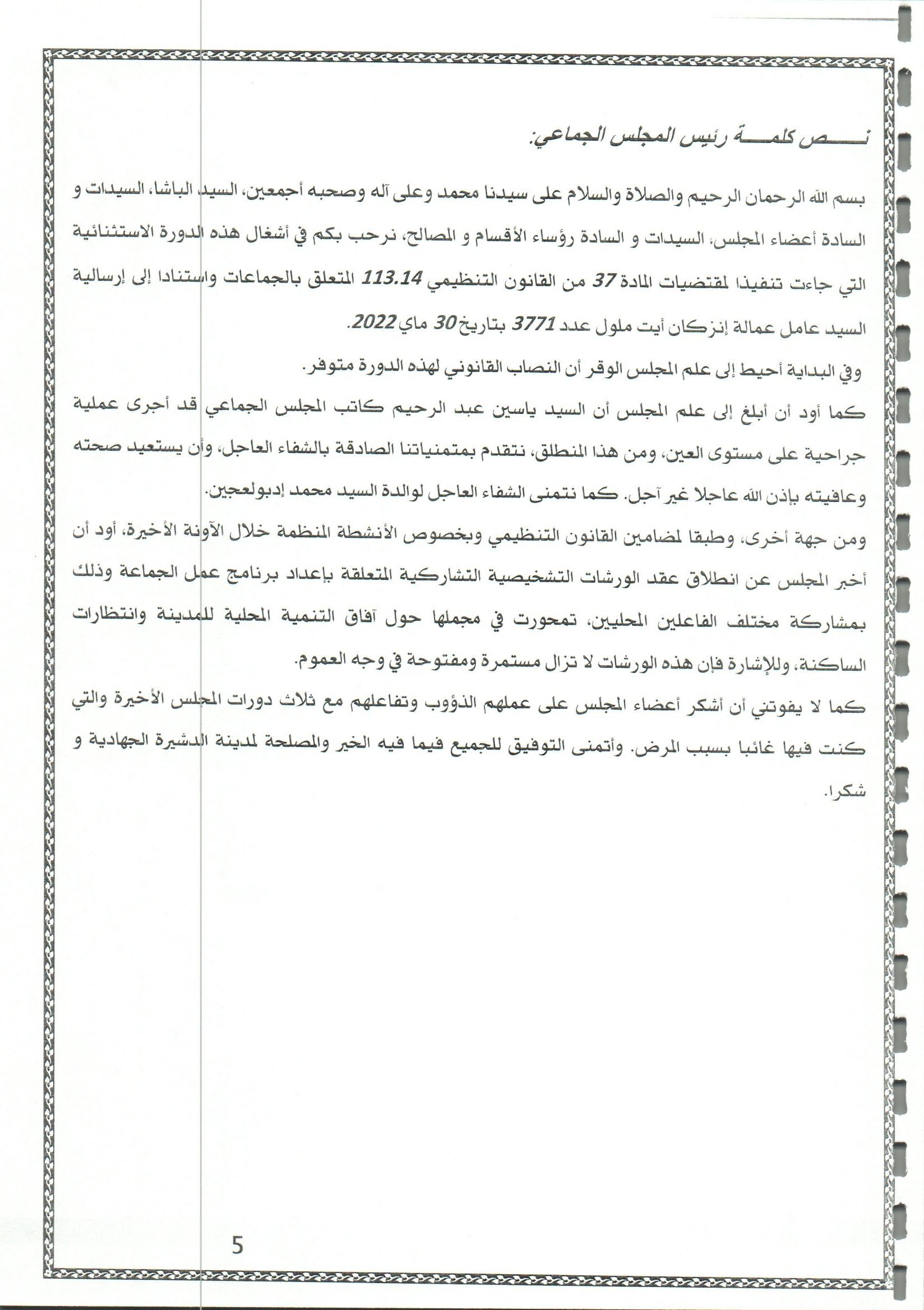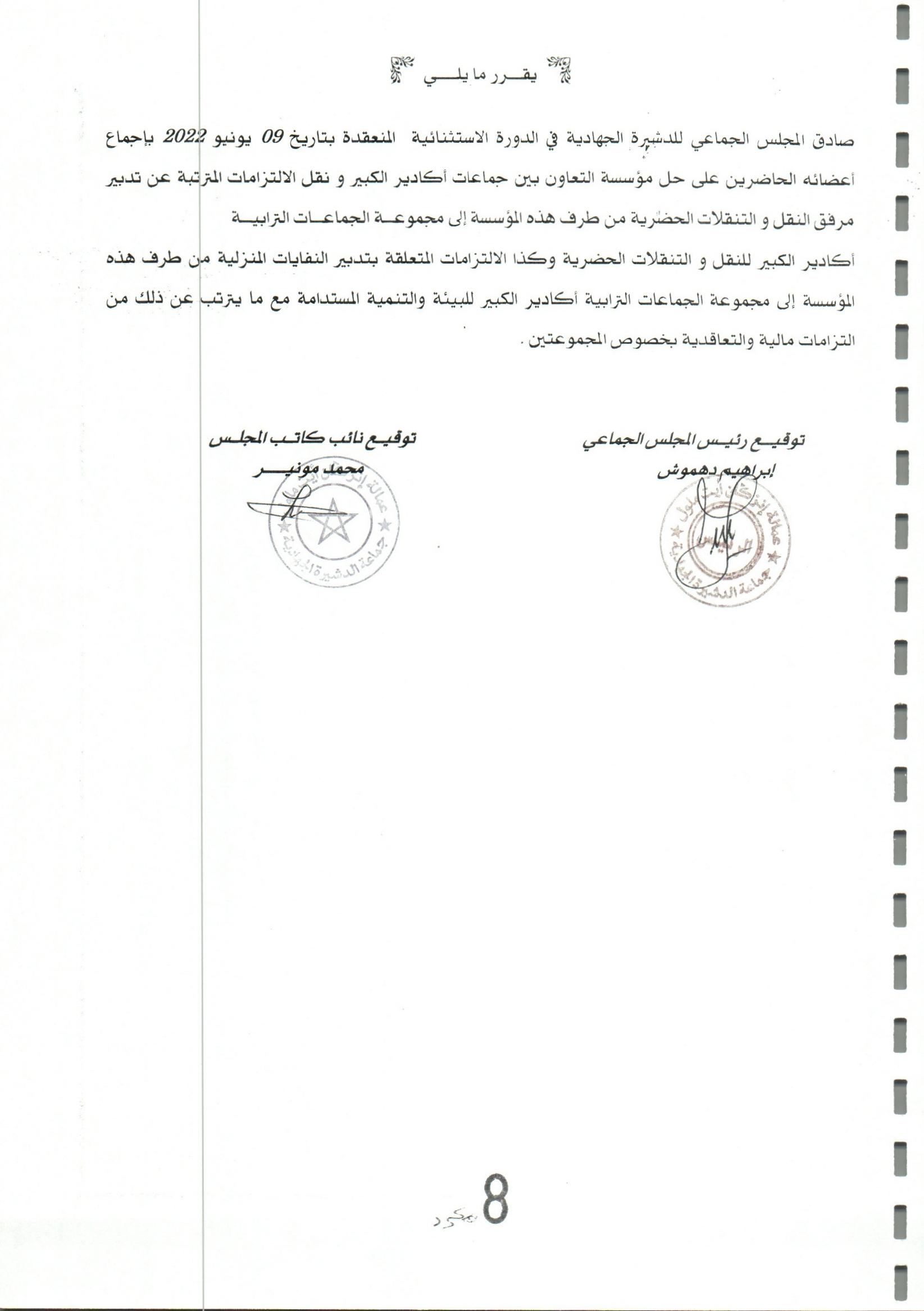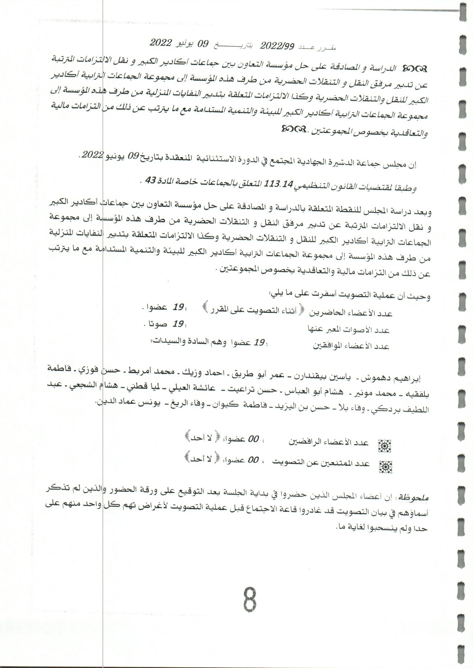 محضر إجتماع المجلس الجماعي للدشيرة الجهادية الدورة الاستثنائية بتاريخ 09 يونيو 2022 محاضر دورات المجلس شارك FacebookTwitterWhatsAppLinkedinTelegram